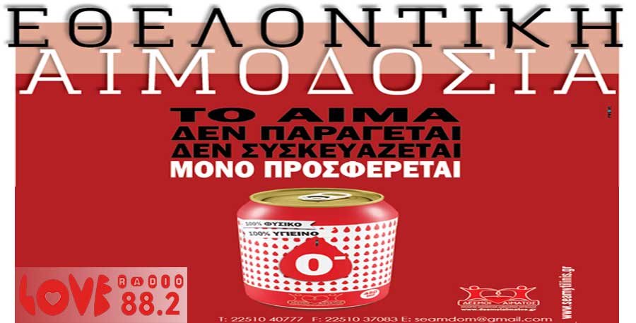 ΣΥΛΛΟΓΟΣ ΕΘΕΛΟΝΤΩΝ ΑΙΜΟΔΟΤΩΝ ΚΑΙ ΔΩΡΗΤΩΝ ΟΡΓΑΝΩΝ ΜΥΤΙΛΗΝΗΣ Δ/ΝΣΗ: ΚΟΥΝΤΟΥΡΙΩΤΗ 1 Τ.Κ. : 81 100 ΜΥΤΙΛΗΝΗ ΤΗΛ. : 22510 40777 FAX : 22510 37083 email: seamdom@gmail.comΩ ΕΘΕΛΟΝΤΙΚΗ ΑΙΜΟΔΟΣΙΑ στη ΜΥΤΙΛΗΝΗ ΔΕΥΤΕΡΑ 15-ΤΡΙΤΗ 16 – ΤΕΤΑΡΤΗ 17- ΠΕΜΠΤΗ 18 ΙΟΥΝΙΟΥ 2020 9-2 πρωί και 5.30-9.30 απόγευμα Στην ΑΙΘΟΥΣΑ του ΠΕΡΙΦΕΡΕΙΑΚΟΥ ΣΥΜΒΟΥΛΙΟΥ (πρώην ΝΟΜΑΡΧΙΑ) Με μία […]