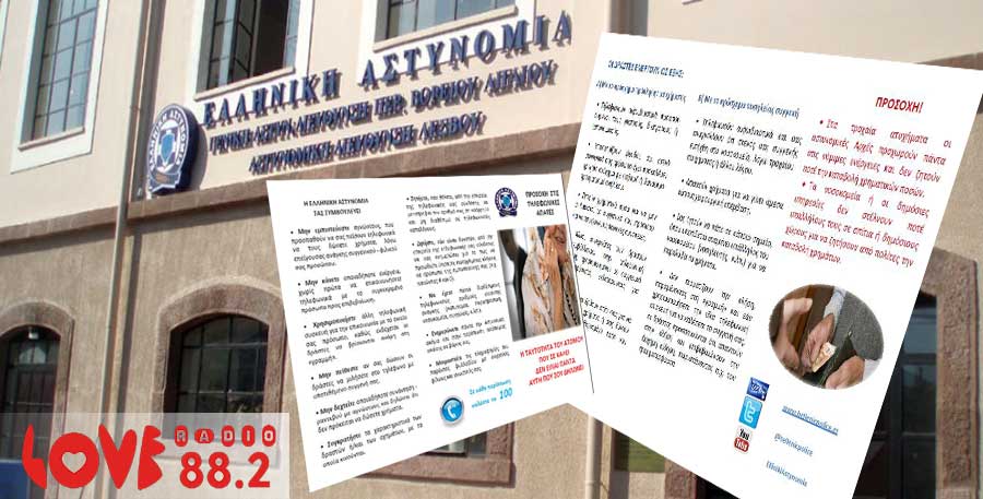 Με αφορμή περιστατικά εξαπάτησης πολιτών από επιτήδειους, οι οποίοι με διάφορα προσχήματα και τεχνάσματα αποσπούν – κυρίως από ηλικιωμένους – χρηματικά ποσά, η Γενική Περιφερειακή Αστυνομική Διεύθυνση Βορείου Αιγαίου συμβουλεύει τους πολίτες : να είστε ιδιαίτερα επιφυλακτικοί σε αγνώστους που επιχειρούν με διάφορα προσχήματα και τεχνάσματα να μπουν στο σπίτι σας, να μην […]